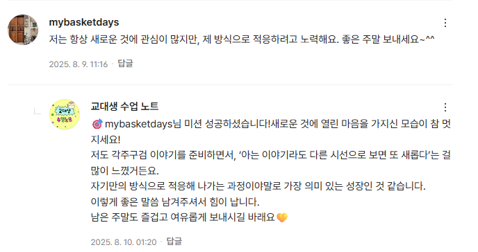 ✨ 교수노(교대생수업노트) 챌린저분들을 발표합니다! (8/4~8/10)