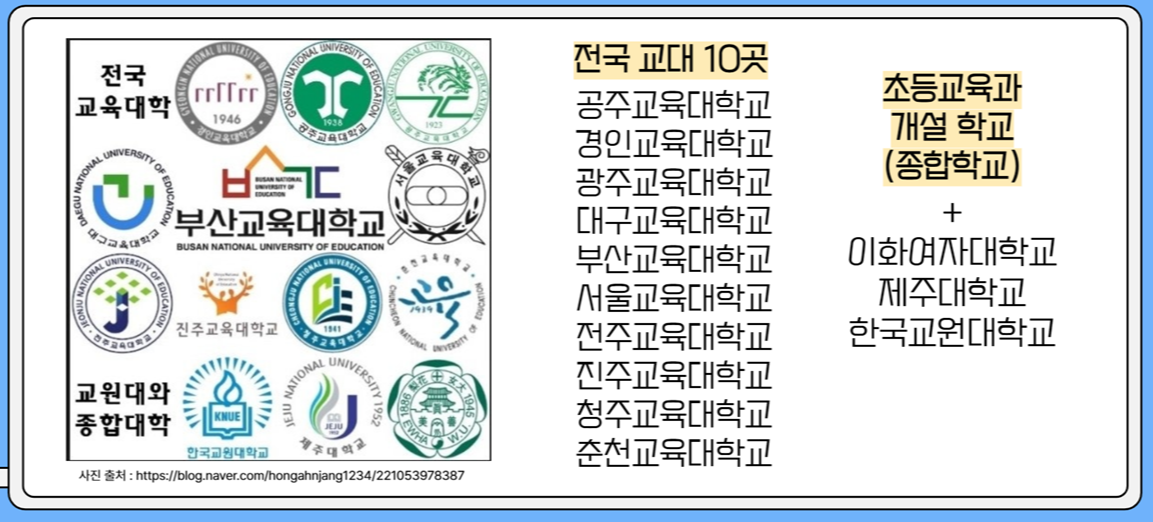 교육대학교는 초등교사를 양성하는 학교이구요.